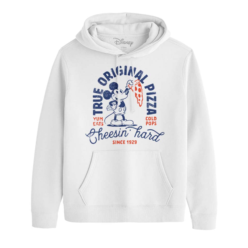 Disney Mickey Mouse True Original Pizza Cheesin Hard Men's Hooded Sweatshirt