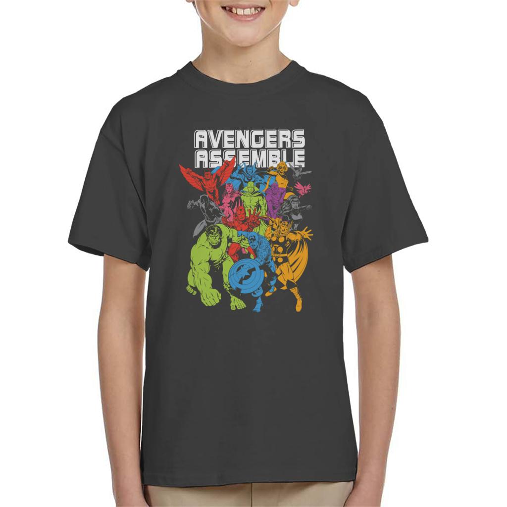 Marvel Avengers Assemble Comic Book Colour Art Kids T-Shirt