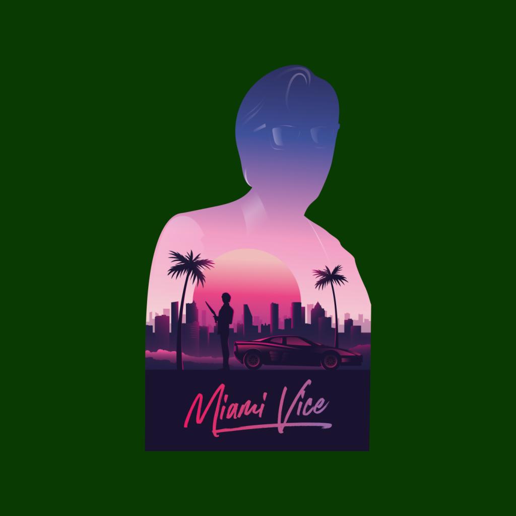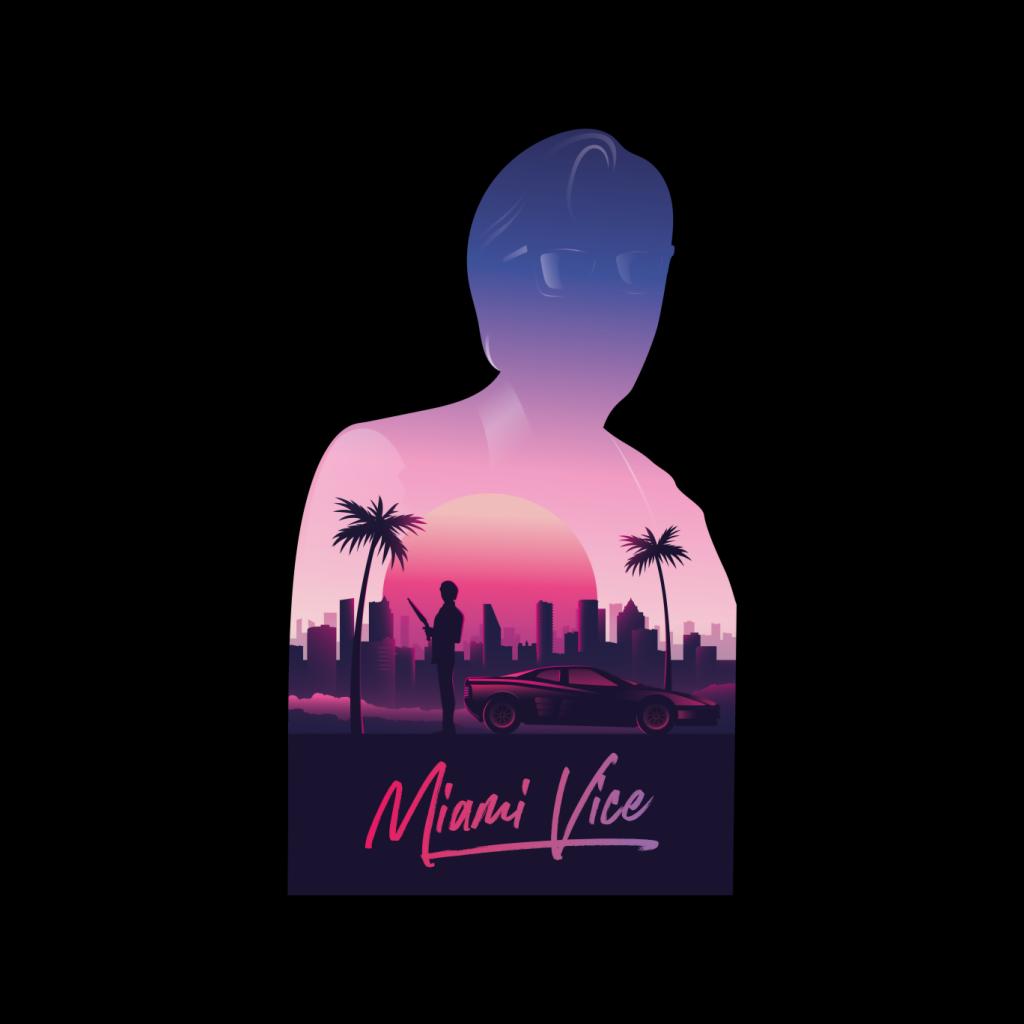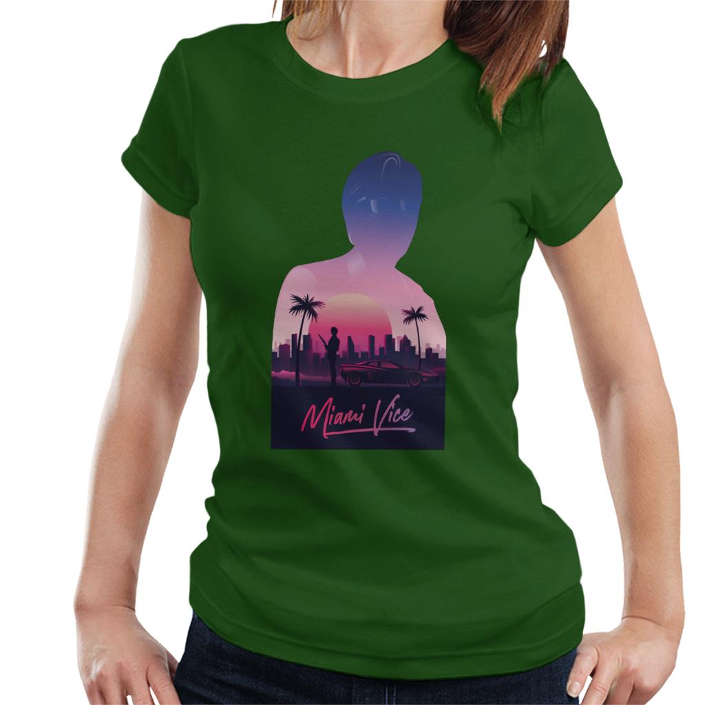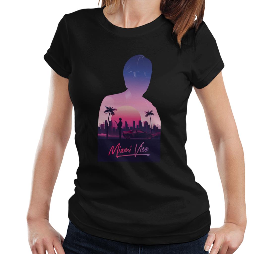 Miami Vice Sunset City Silhouette Womens T-Shirt