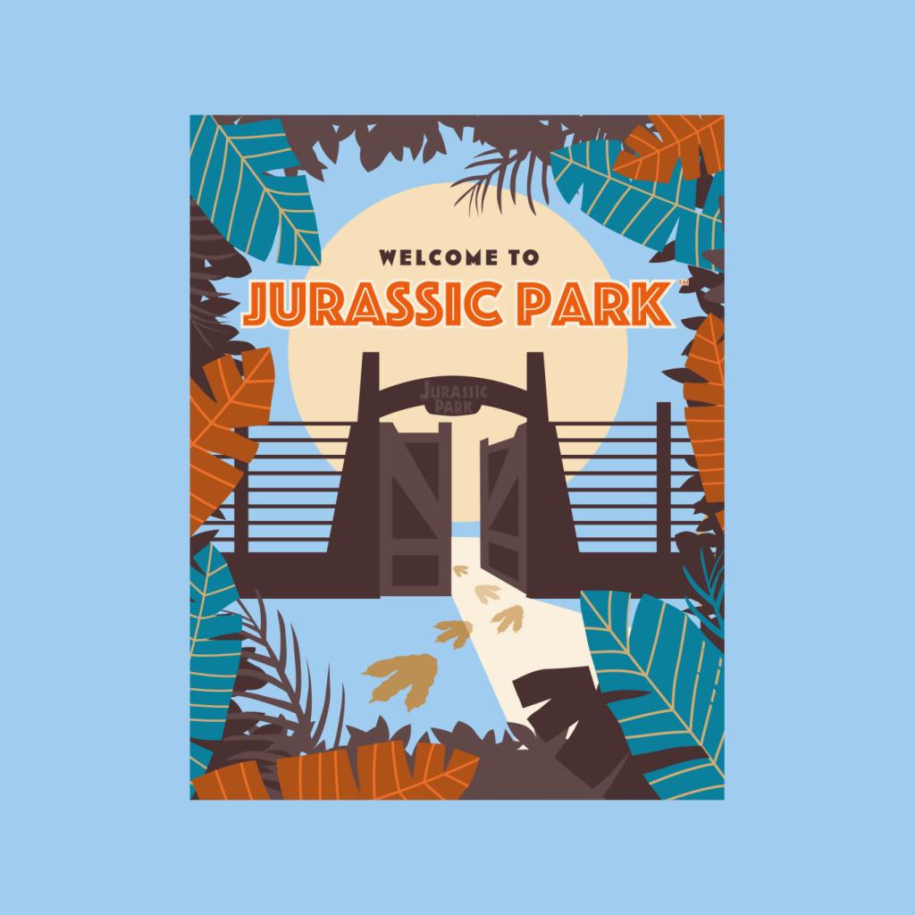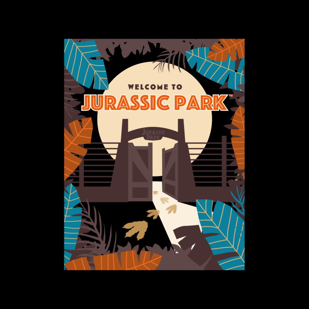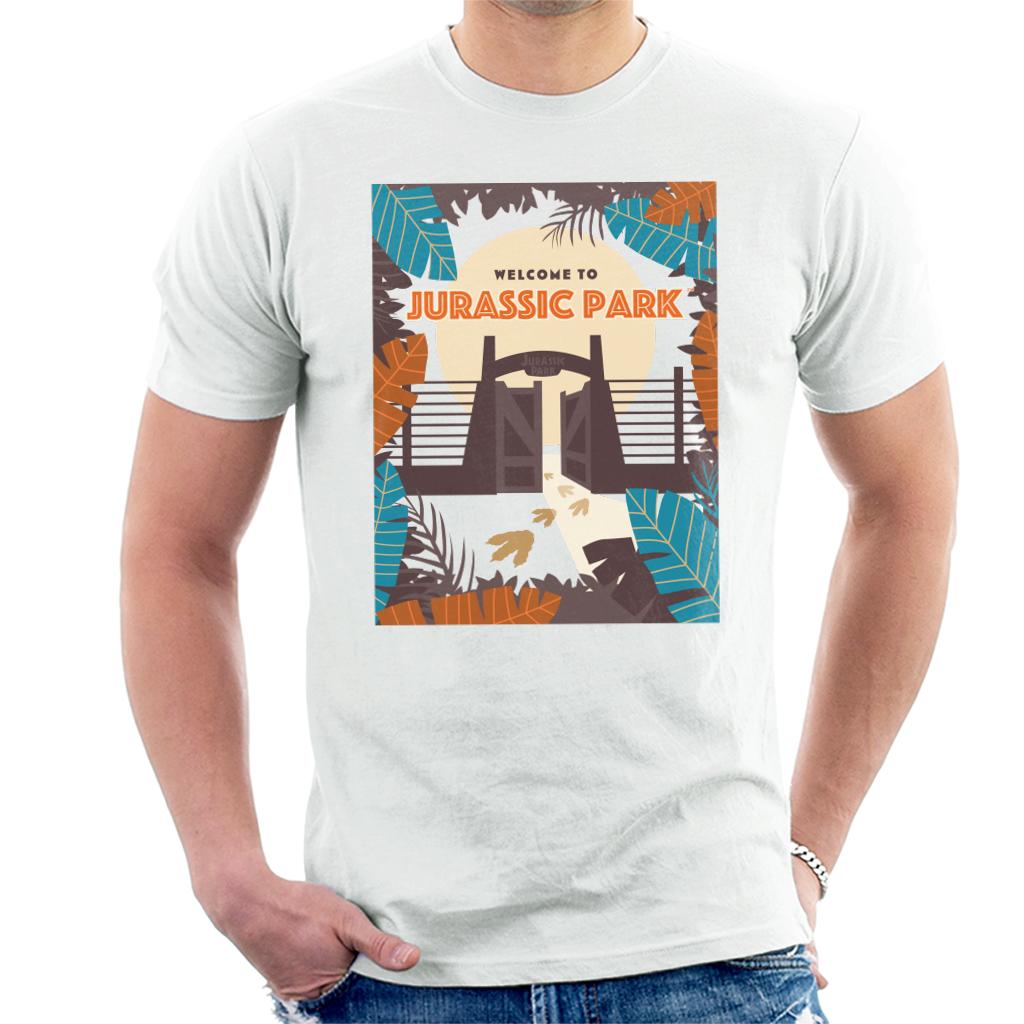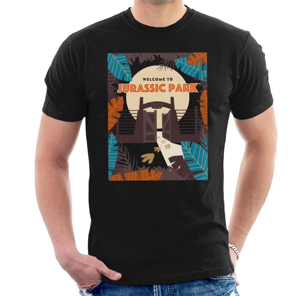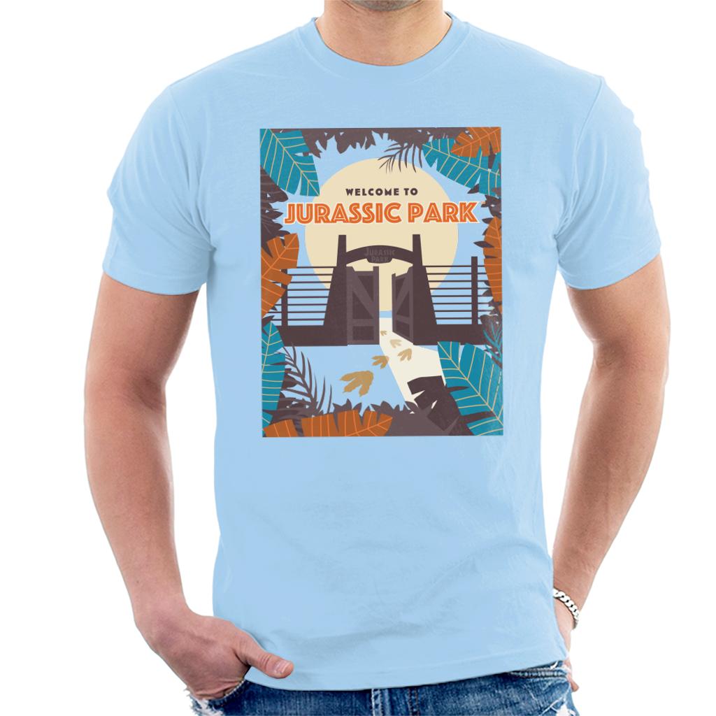 Jurassic Park Welcome To Sign Blue Leaves Mens T-Shirt